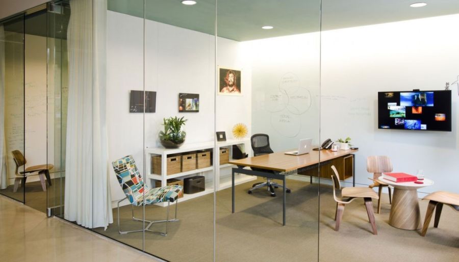 * As compared to sheetrock, glass partitions are less permanent and more mobile solution.