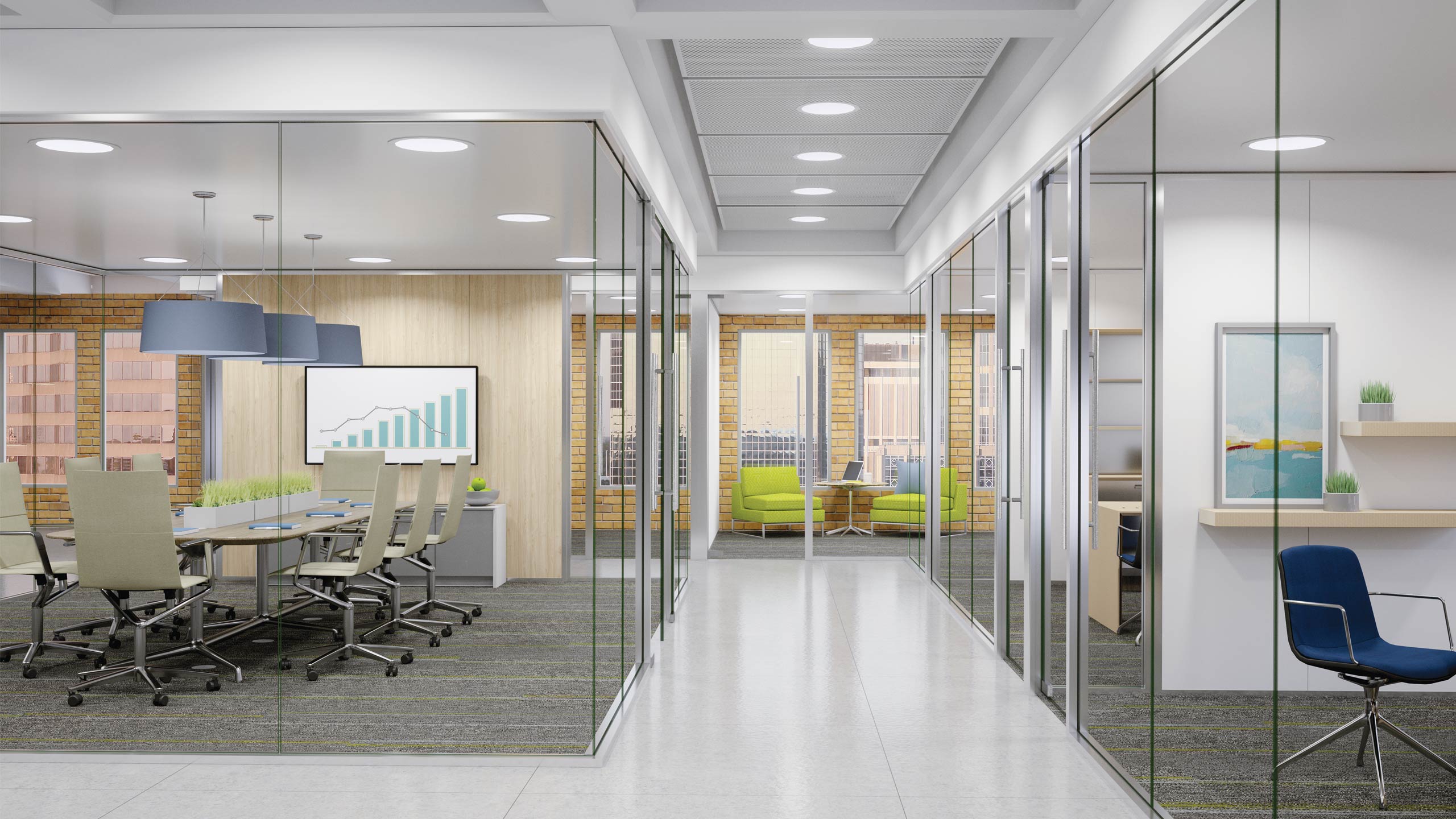 * You can reconfigure and move glass partition walls to accommodate a wide array of needs.